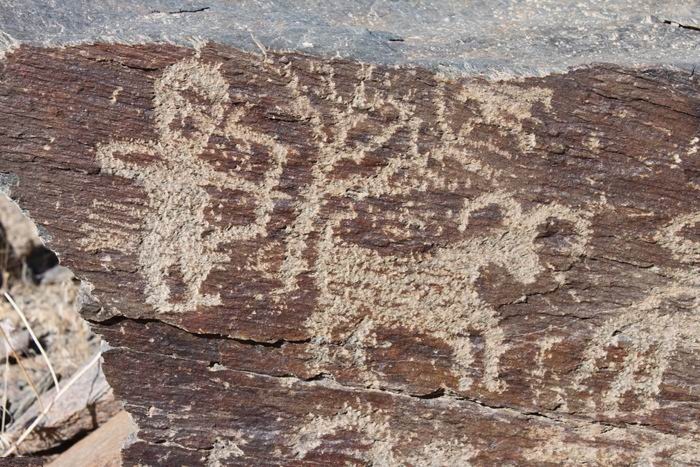 اشکال هندسی، گیاهان، حروف رمزی، نمادهای گوناگون، حیواناتی که نسل آنها منقرض شده و پیچهای متوالی، متناوب و متحد المرکز که شبیه آنها در 23 کشور جهان وجود دارد و چند کتیبه عربی متعلق به نیمه اول قرن هشتم نقوش این محوطه ها نشان می دهد که در اعصار باستان مردم زیادی در این سرزمین زندگی می کرده اند.