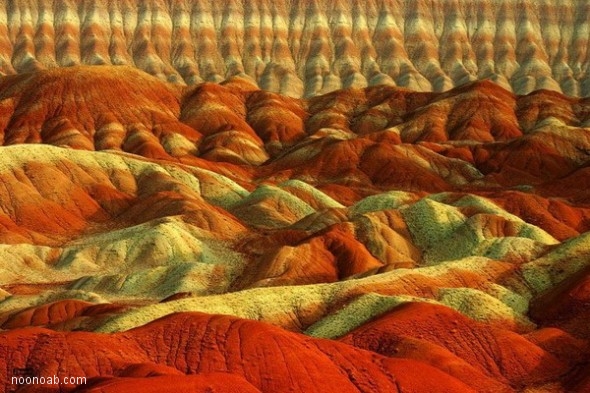 «آلاداغ لار» یا کوههای رنگی یکی از شفتگی آفرینش که در ۲۵ کیلومتری شمال خاوری تبریز و در گذرگاه شهرستان خواجه و بزرگراه میانه - زنجان می باشد. آلا داغ لار، نام بومی کوه ها و تپه های رنگارنگی است، که در بخشهایی از آذربایجان جای گرفته اند. اگر راهتان به شهرستان های نامبرده خورده باشد بیگمان کوههای رنگی یا آلاداغ لار را دیده اید. در نگاه نخست کوههای رنگی را شاید یک دفتر نگارگری پندارید ، ولی هنگامیکه ریزبینانه به مناظر و کوهها و تپه ها می نگرید جز زیبایی که خداوند آفریده نخواهید دید. کوههای رنگی یا آلاداغ لار یکی از مناظر زیبا روی زمین به شمار می آید. این مناظر آنقدر کمیاب و شگرف اند که گاهی ما گمان میکنیم رو به دیدن مناظری از یک اختر دیگر هستیم. هستی رنگهایی همچون سُرخ ، زرد، سپید و نارنجی چشم های آدمی را خیره می کند. در نزدیکی این کوهها چندین روستا آرام گرفته که در میان کوههای رنگی جای گرفته اند، خاک به کار رفته در کاهگلی که برای ساختن سرای بهرمندی می شود سُرخ رنگ است.